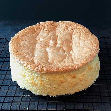 Makes as much as the cake pans will hold! Don’t fill your ring too high or else it will go over the edge and will look like a mushroom, henceforth “The Mushroom Effect”. Don’t let your eggs and sugar sit too long or else they will become semi-solid! It should take about 5 minutes to create a firm ribbon, depending on your mixer. Be patient! Don’t stop the mixture when its beating the eggs and sugar. Don’t take the génoise out of the oven until it’s completely done. WATCH OUT! All-purpose flour is too heavy for this recipe. If you can’t get cake flour, you can use this mix instead: 1 cup all-purpose flour with 2 Tbsp of cornstarch. Sift the two together! If you want to make it chocolate, Subtract the amount of cocoa powder you want to use from the total amount of flour! And if you want to soak these in a simple syrup then trim the top to expose the cake before you do, then you can either eat the top or throw it away! ( I recommend eating it!)