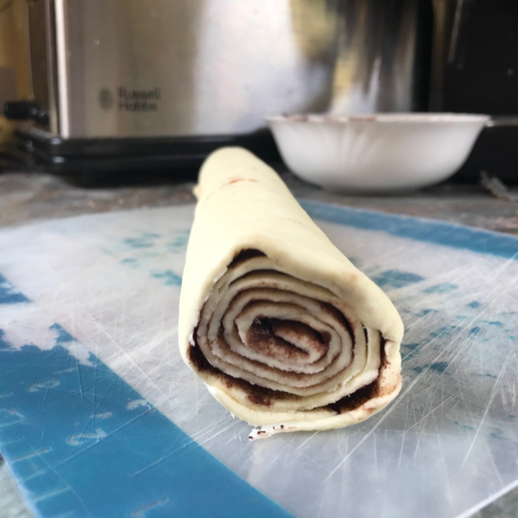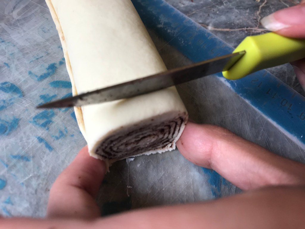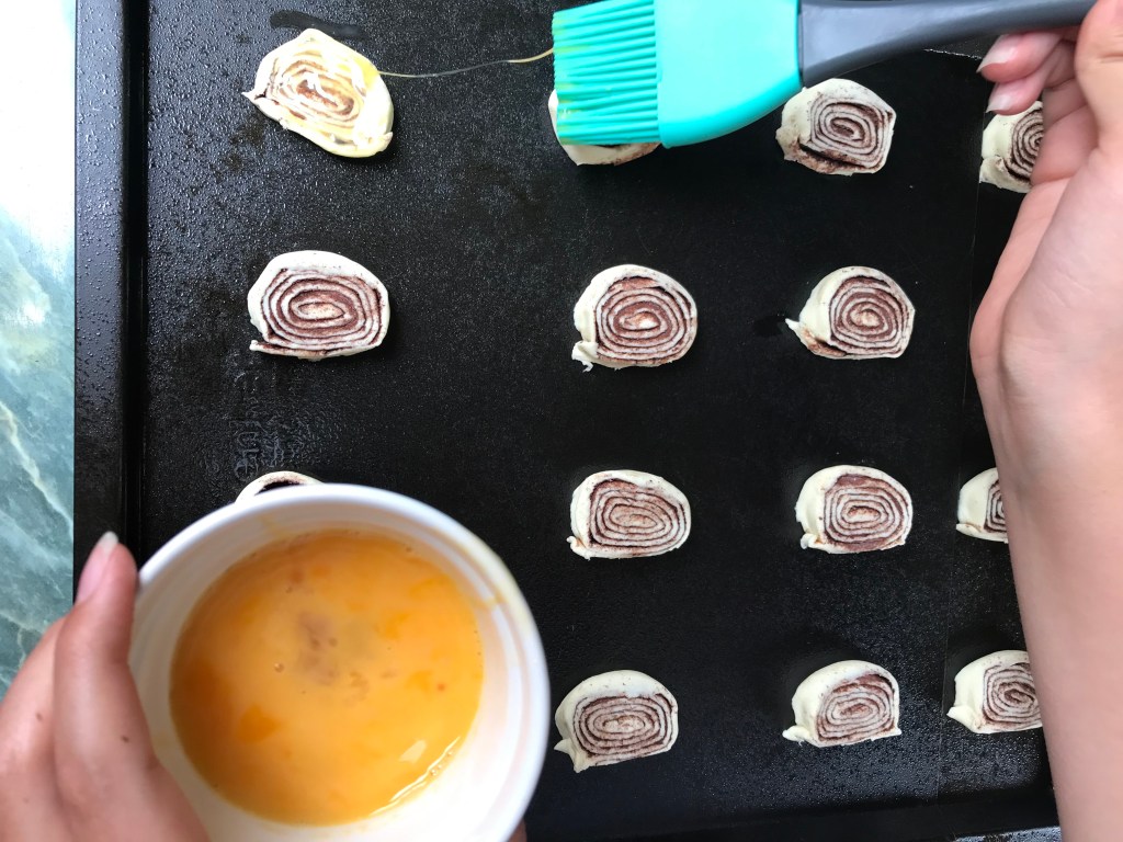 While the roll is in the fridge, whisk the egg with a fork until combined, and spray a cookie sheet with baking spray.