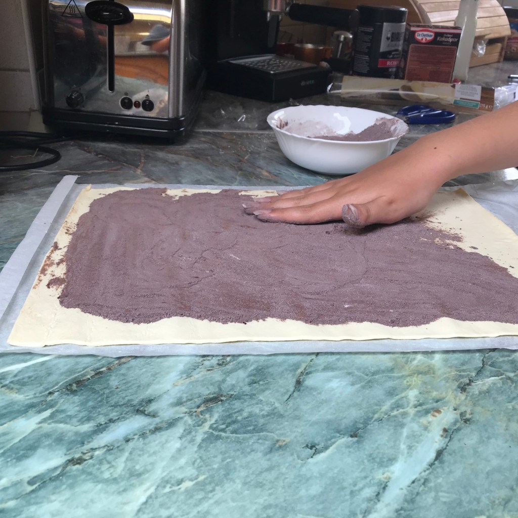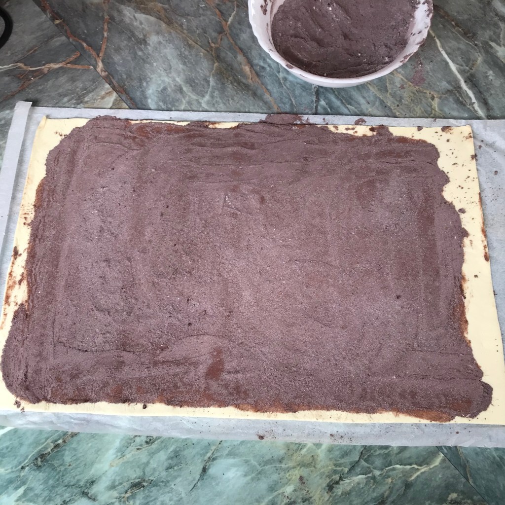Sprinkle mixture evenly over the Pastry, don’t use all of it because it is too much.