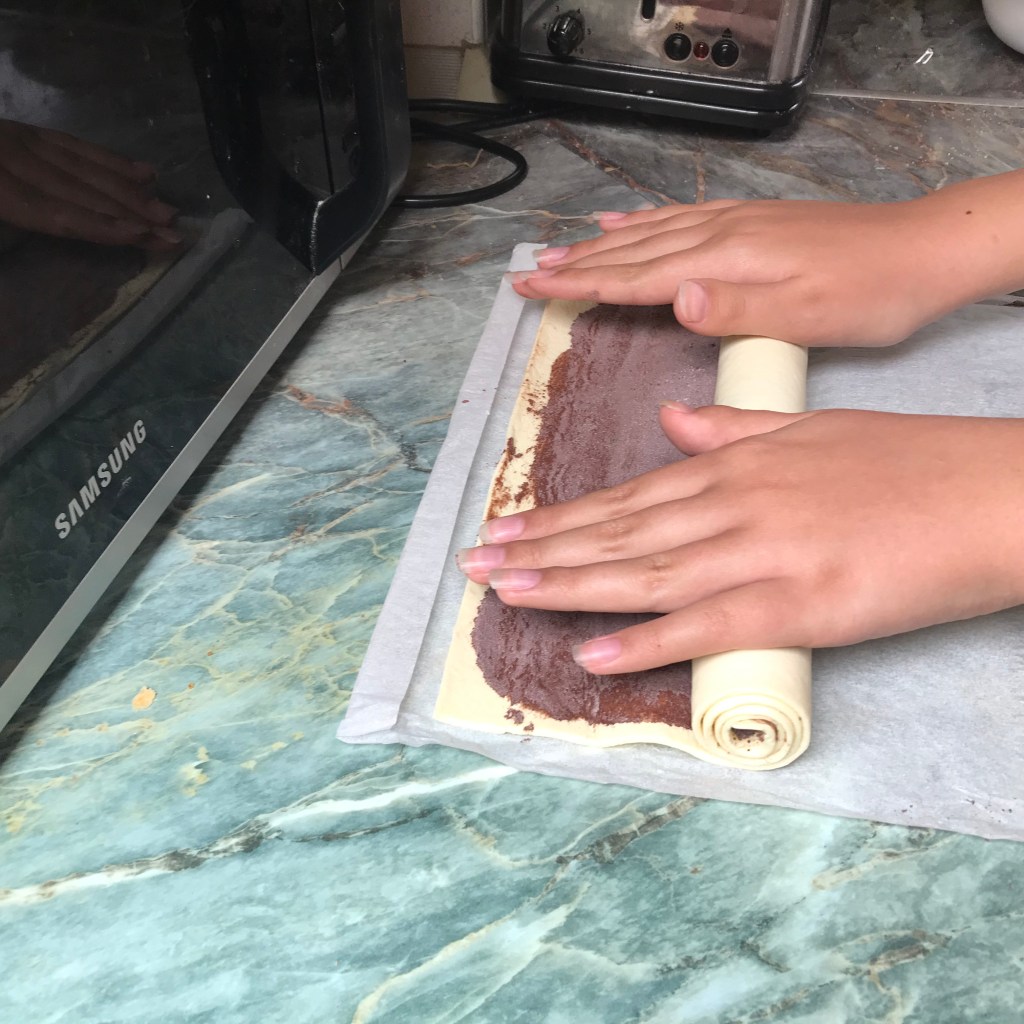 This traditional Hungarian dessert is in almost every bakery that I’ve been to, and no wonder because its really good! It is called a Chocolate Snail because it is spiral shaped and kind of looks like the shell of a snail, thats what the word Csiga means. It is pronounce ‘Chee-gah’. This recipe is for bite-sized Spirals because they are much easier to make than the giant ones in the bakeries, but they still taste just as good. You can also, instead of the cocoa powder and sugar, use cinnamon and sugar, or jam, try anything you want!