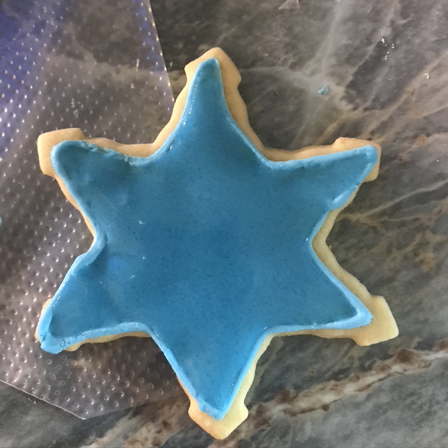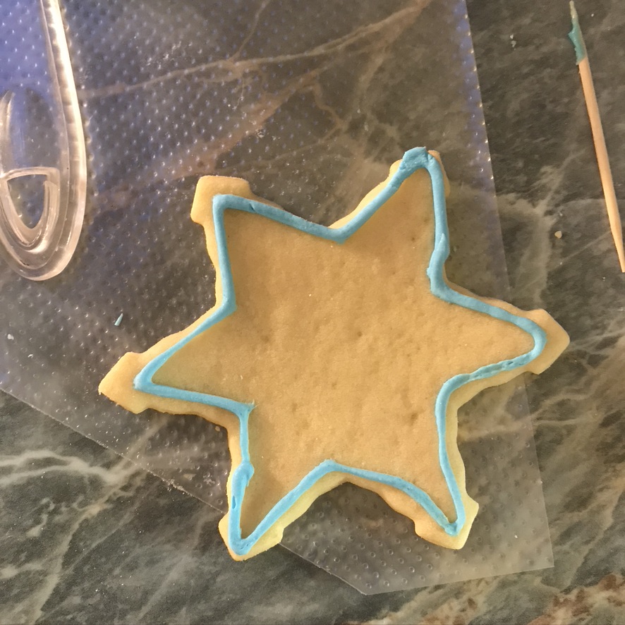 3. And, using a toothpick, combine all the frosting to where it didn’t reach, kind of like painting your cookies!